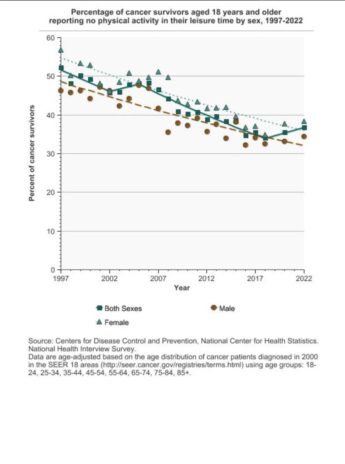 The percentage of cancer survivors reporting no physical activity has gone up year over year since 2019 signifying the importance of lifestyle interventions.